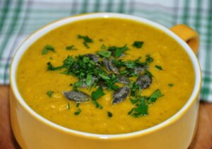 Poate că v-am mai povestit cât de mult ne place lintea, în special lintea roşie. În Dieta Carbohidraţilor Specifici lintea este permisă dacă se ţine la înmuiat 12 ore, timp în care schimbăm apa de câteva ori, până când aceasta rămâne limpede, motivul fiind îndepărtarea carbohidraţilor complecşi din coajă, pentru cei cu anumite lipsuri în procesul lor de digestie. Astfel, lintea odată ţinută la înmuiat se găteşte fără nici o restricţie şi are nenumărate beneficii în sănătate, fiind bogată în vitamine, minerale şi fibre. Pentru această reţeta aveţi nevoie de următoarele: 300 de grame